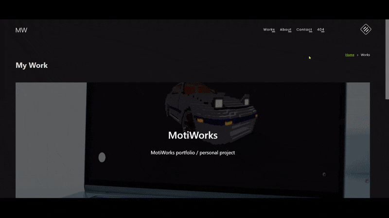 Once I got a working prototype with boxes; I tackled on making a car model using MagicaVoxel (used a 3D model by Lexyc16 for measurements) and Blender for baking in the effects like metalness and light as MV did not export the materials natively. Satisfied with how the model came out, I started building out the rest of the site homepage, about, etc. I got to where it was really looks like Takuya's site (without the Blogs) and I'm happy that I was able to do something like that but I felt that it wasn't me. I set on to reimagine the site as I don't have a concrete idea on how it should look.